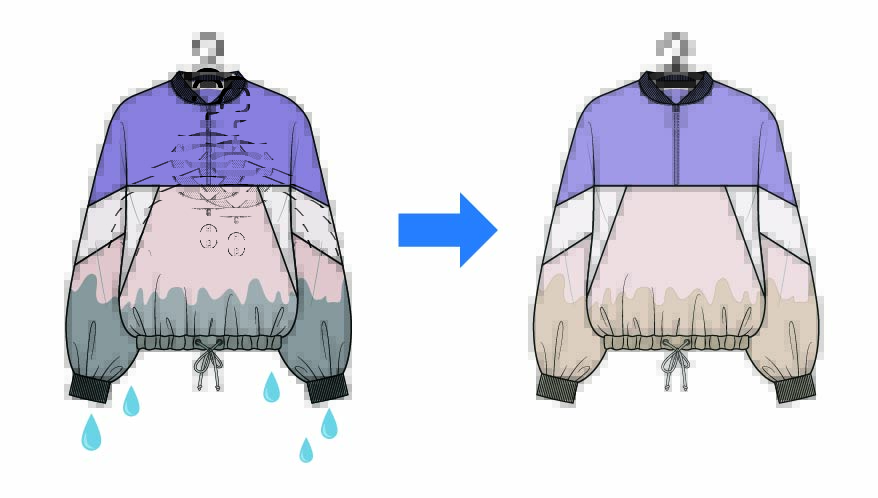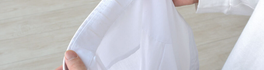 この状態で水がなかなか乾かないと、最終的に袖・裾に黄色く紋ができてしまいます。
