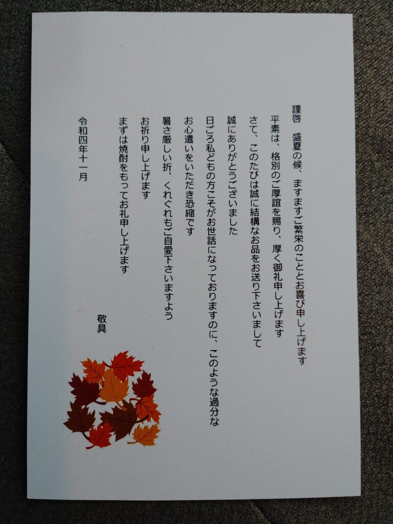 お歳暮をたくさん頂いたのでお礼状を書きました