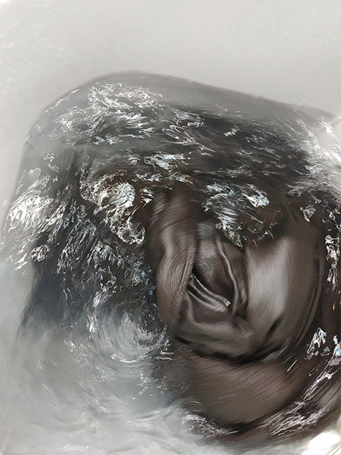 軟水の効果は、すすぎにも発揮されます。この写真は水洗いテストですすぎを開始して10秒のものですが、