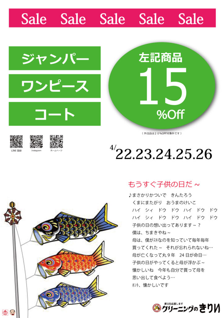 トップページきりいのブログ4/22スタート☆コート・ジャンパー・ワンピース 15%OFF 2024.04.21 4/22スタート☆コート・ジャンパー・ワンピース 15%OFF スタッフブログ セール情報