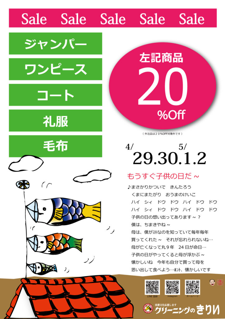 トップページきりいのブログ4/29スタート☆ジャンパー・コート・ワンピース・礼服・毛布 20%OFF 2024.04.28 4/29スタート☆ジャンパー・コート・ワンピース・礼服・毛布 20%OFF スタッフブログ セール情報