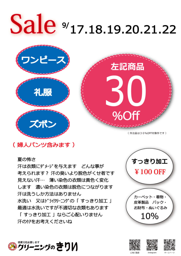 9/17スタート☆ワンピース・礼服・ズボン 30%OFF