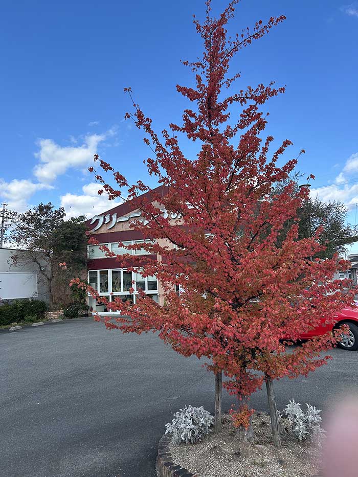 本店のシンボルツリーも鮮やかに赤く色づきました~