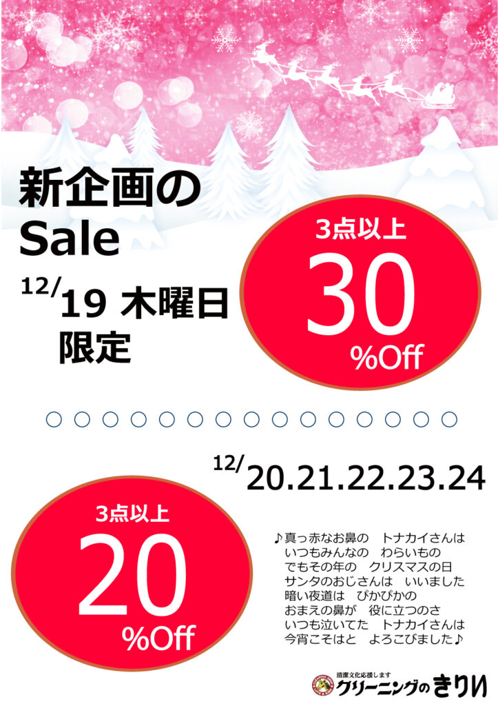 トップページきりいのブログ12/19スタート☆3点以上30%OFF 12/20~ 3点以上20%OFF 2024.12.18 12/19スタート☆3点以上30%OFF 12/20~ 3点以上20%OFF スタッフブログ セール情報