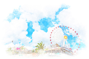 さあ、次は北谷のアメリカンビレッジへ ああ… あの観覧車のあるとこね。そうそう、そこね