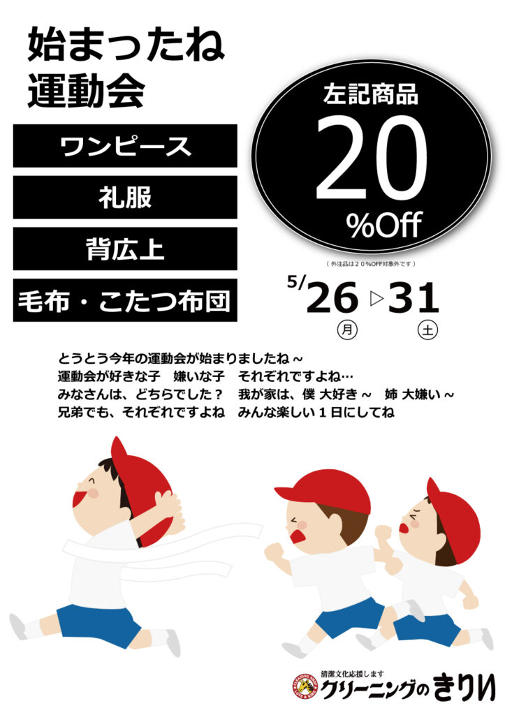 トップページきりいのブログ5/26スタート☆毛布・コタツ布団・背広 上・ワンピース・礼服 20%OFF 2025.05.25 5/26スタート☆毛布・コタツ布団・背広 上・ワンピース・礼服 20%OFF スタッフブログ セール情報