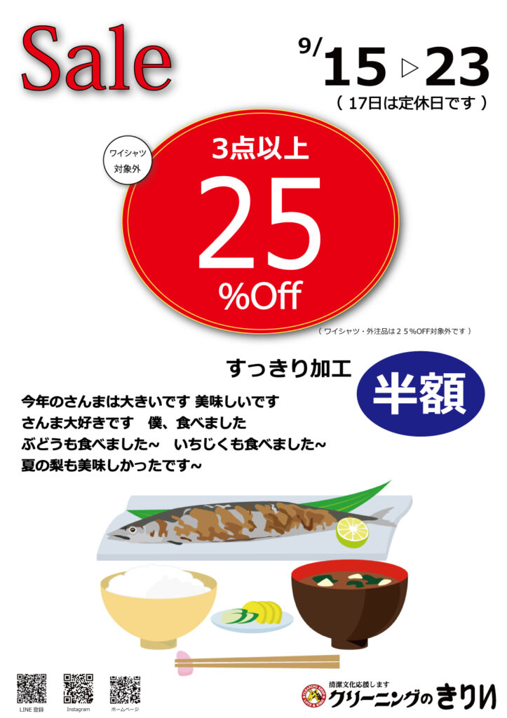 9/15スタート☆3点以上25%OFF
